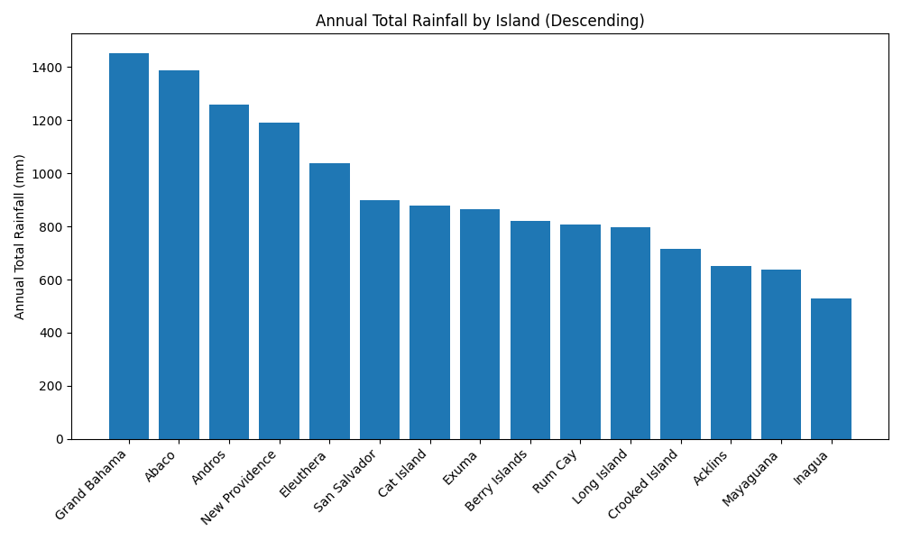 Bar chart ranking islands from wettest to driest based on total annual rainfal
